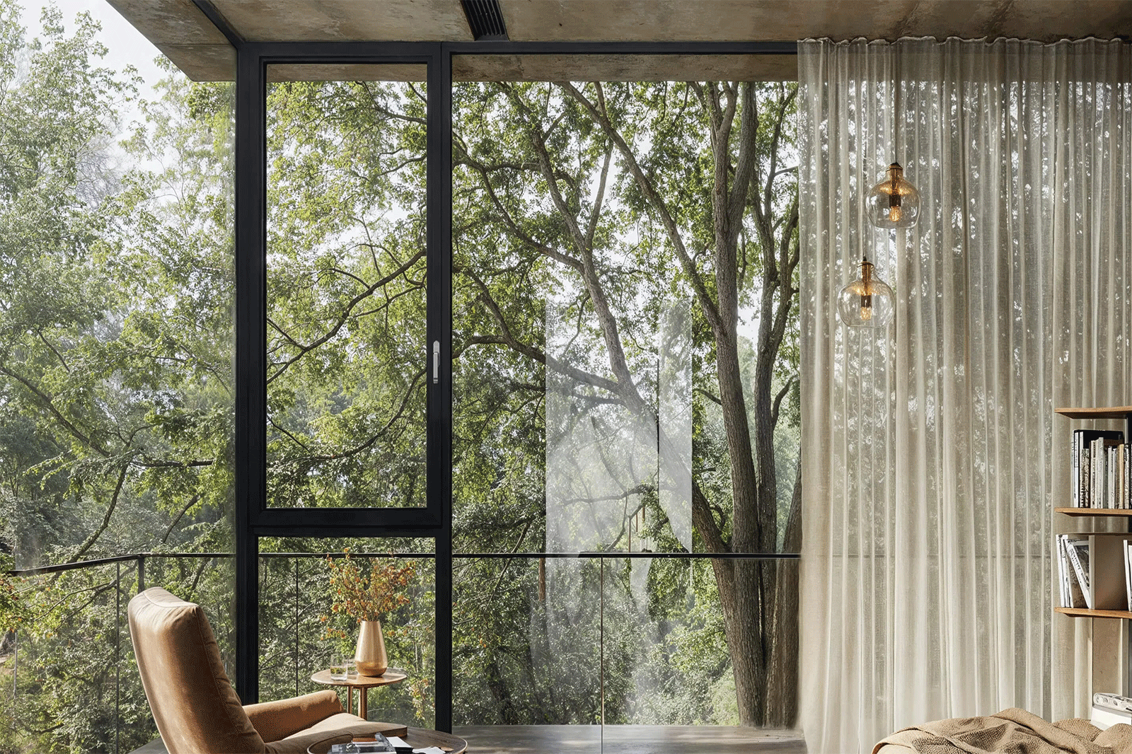框扇室內(nèi)外平齊設(shè)計,線條簡約利落,立面效果簡潔平整。窗扇開啟狀態(tài),開啟扇與建筑外立面平行。